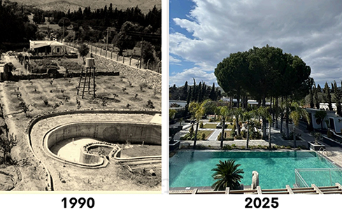 Villa Dei Pini yaklaşık 35 yıllık hikayesi olan, anılarla bezeli bir mekan. Metruk bir şatonun binlerce anıyı saklayan duvarları içerisinde yer alan bahçe, orijinal floral dokusu korunarak eklenen yüzlerce yeni bitki ile çağdaş estetiğin incelikleriyle yeniden hayat buldu. Neredeyse yarım asır önce çekilmiş siyah beyaz fotoğraflardan bugüne ait görsellere yansıyan dönüşüm…